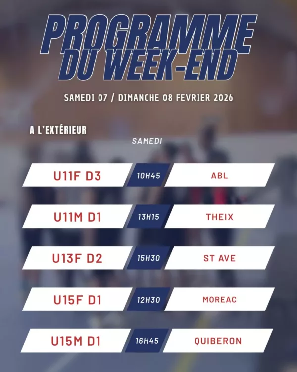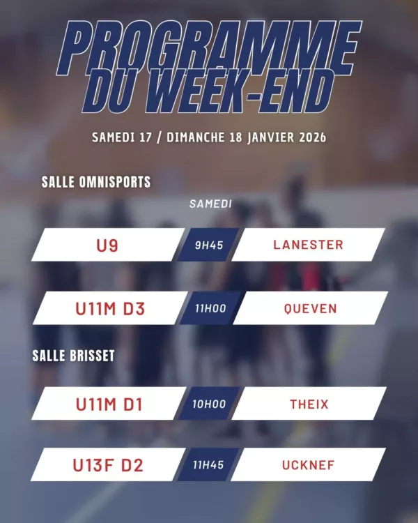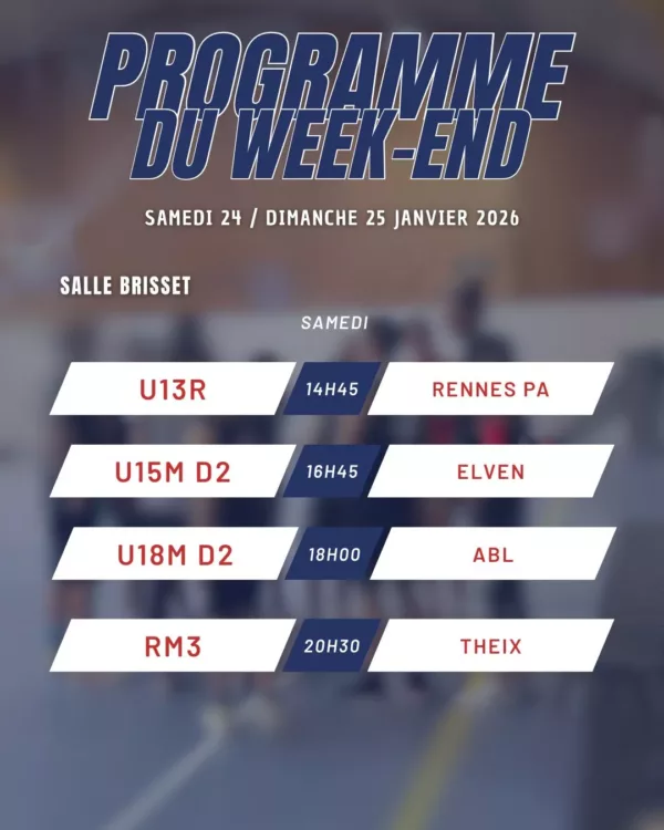 [ Le programme du WE ] Ça commence à omnisports et ça se termine à Kervaric … avec les RM3 samedi soir face à Theix et les U15N dimanche face à Angers ON VOUS ATTEND NOMBREUX